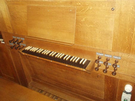 | Manuaal: Prestant 8 (C-E in Gedekt) Gedekt 8 Octaaf 4 Roerfluit 4 Octaaf 2 Mixtuur III-IV sterk (1 1/3′) |