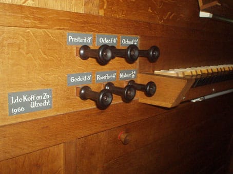 Orgelbouwer: J. de Koff & Zoon, bouwjaar: 1966. De dispositie: