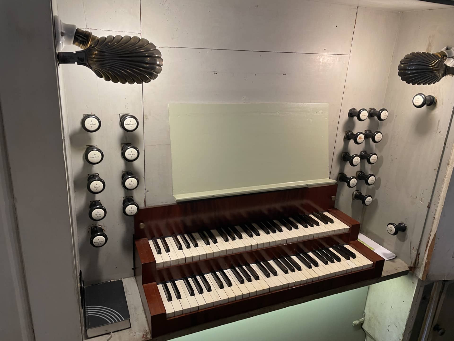 PEDALWERK (C – f1) 30 TOETSEN: Subbaß 16′, Violon 16′, Prinzipalbaß 8′, Choralbaß 4′