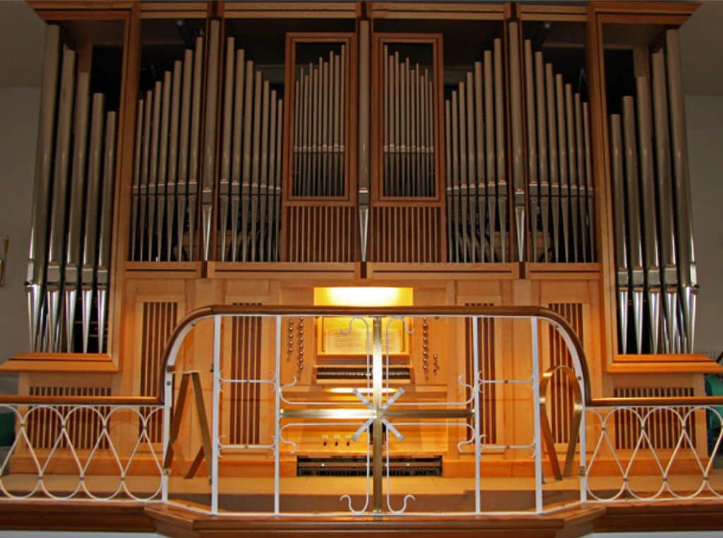 Schwellwerk: C – g3 Gedackt 8′, Gambe 8′, Hohlflöte 4′, Nasat 2 2/3′, Waldflöte 2′, Terz 1 3/5′, Quinte 1 1/3′, Oboe 8′, Tremulant.