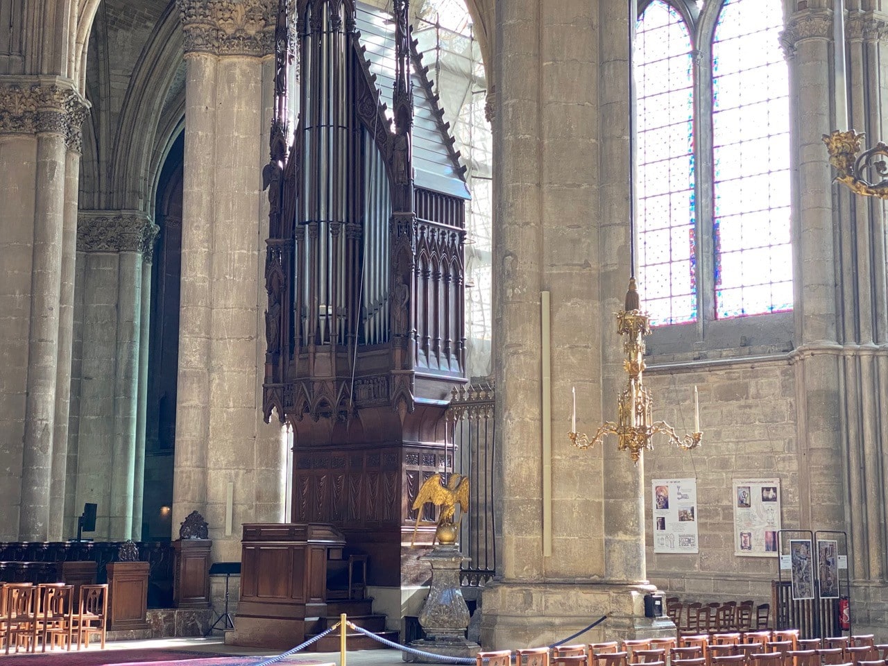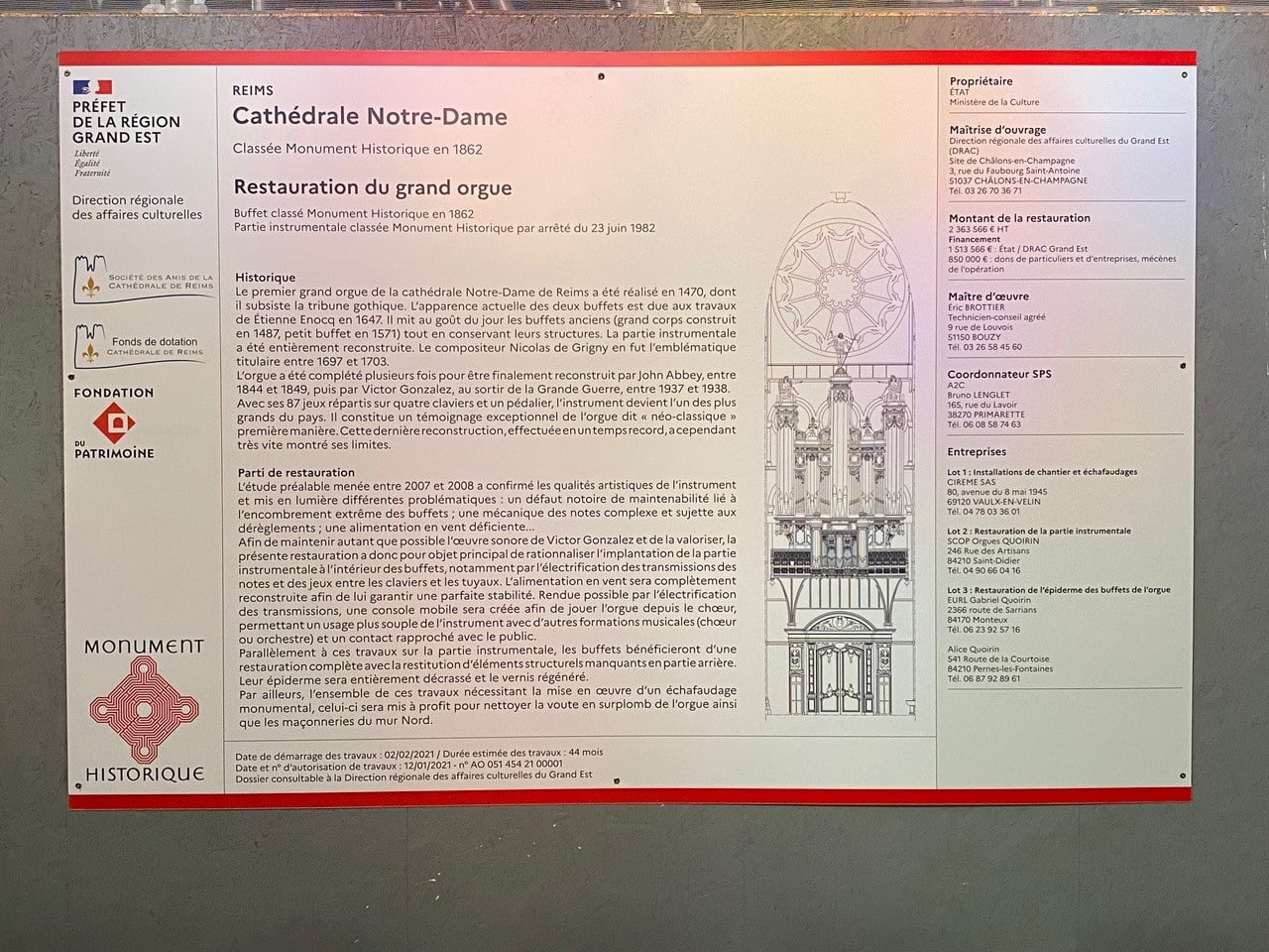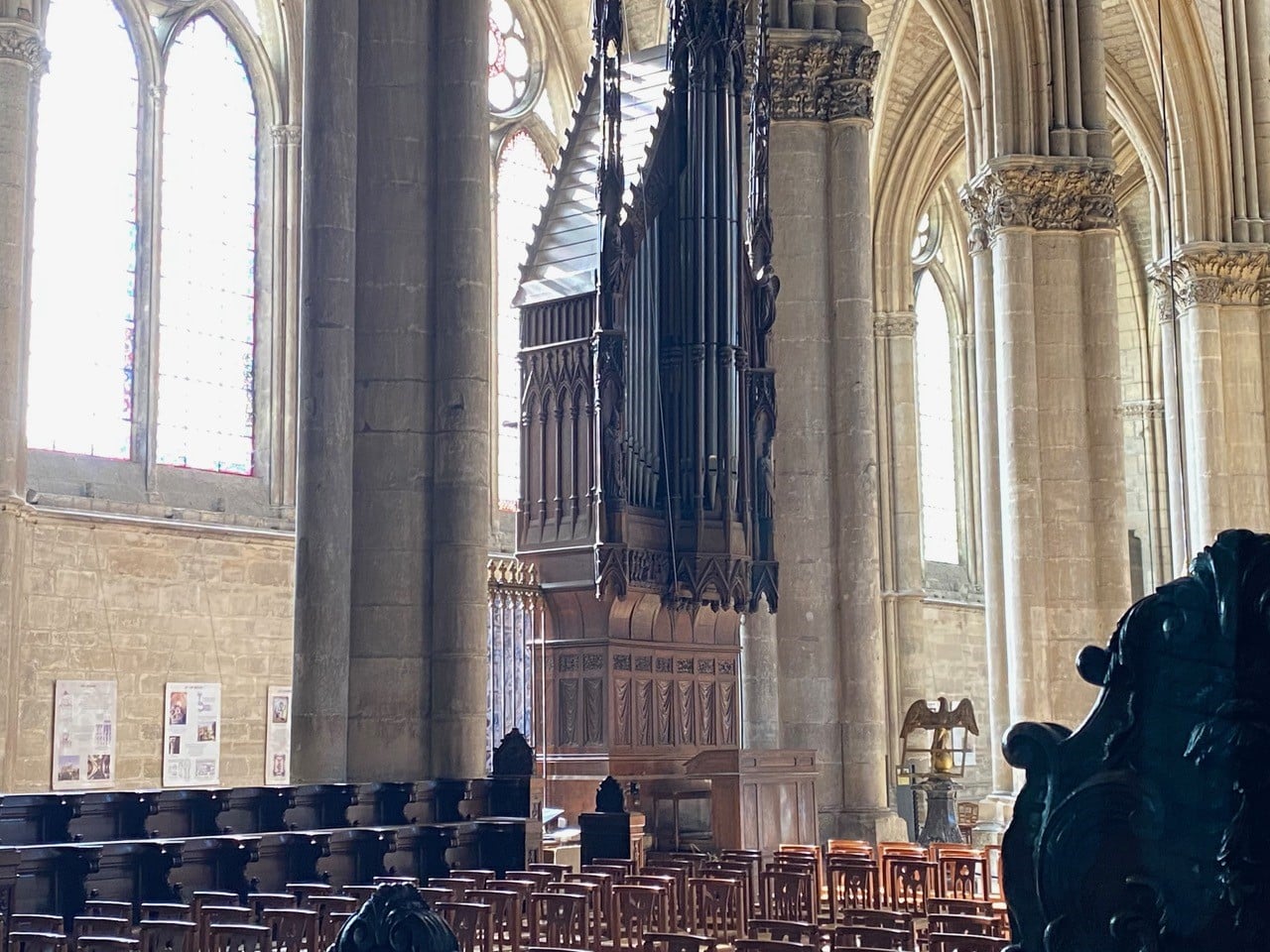 Abbey & Fils bouwde in 1842 een nieuw koororgel met mechanische tractuur, sleepladen, 17 stemmen, 2 manualen en een vrij pedaal voor de Cathédrale Notre-Dame in Reims (Marne (51)) Frankrijk.