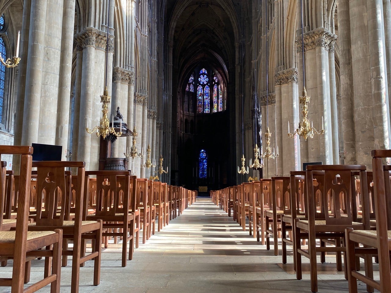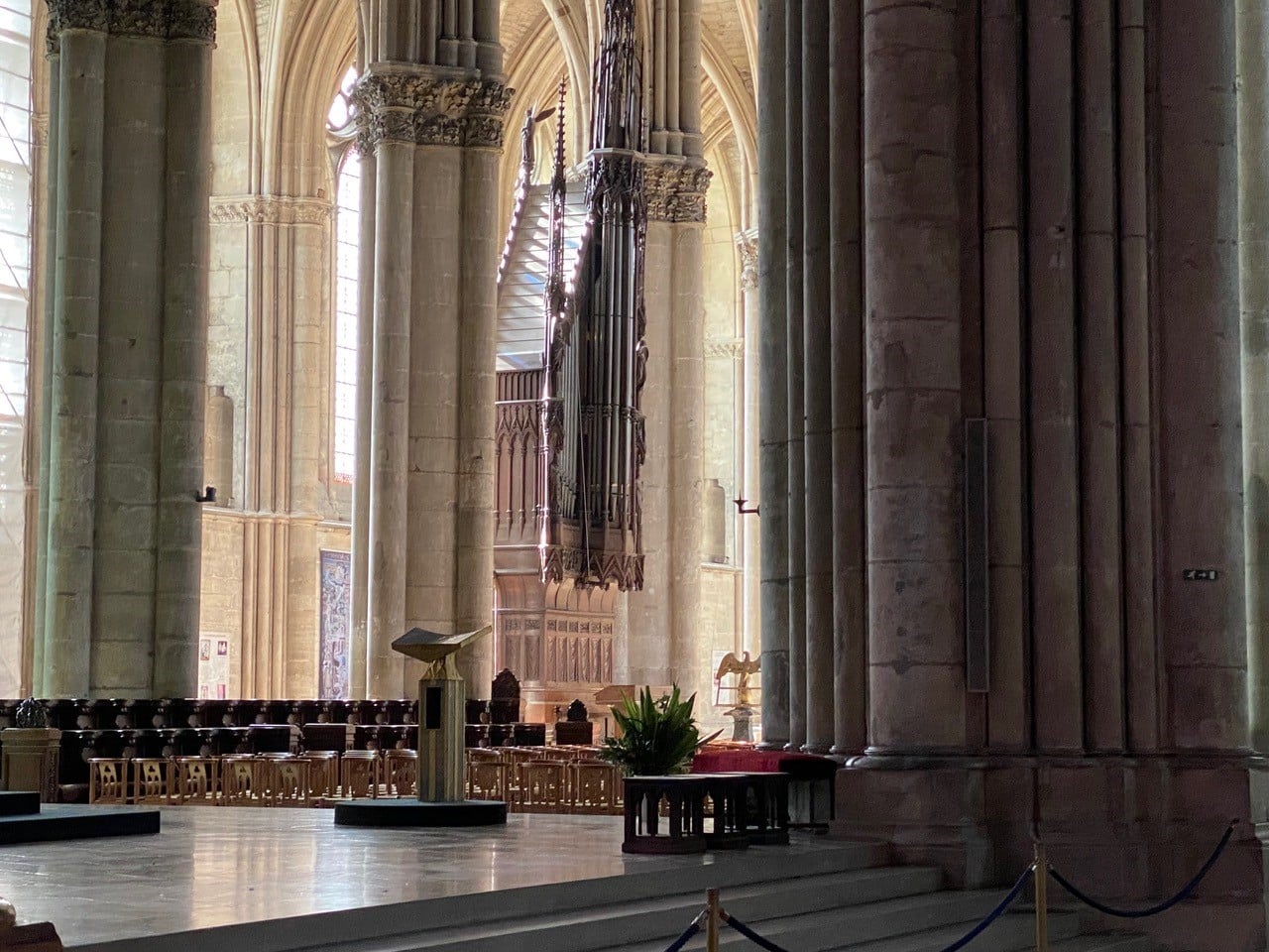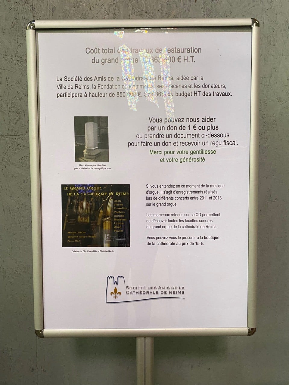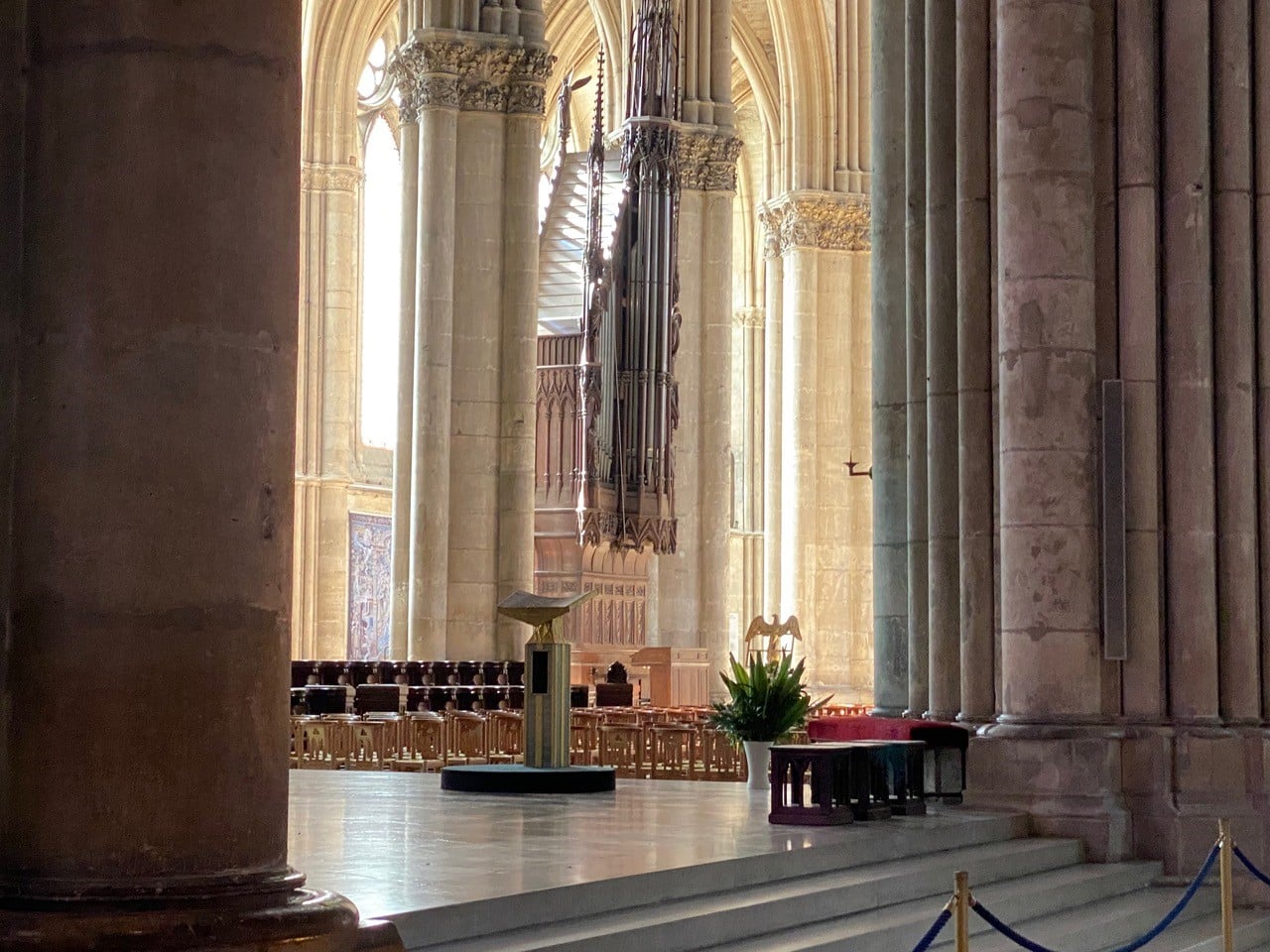 Abbey & Fils bouwde in 1842 een nieuw koororgel met mechanische tractuur, sleepladen, 17 stemmen, 2 manualen en een vrij pedaal voor de Cathédrale Notre-Dame in Reims (Marne (51)) Frankrijk.