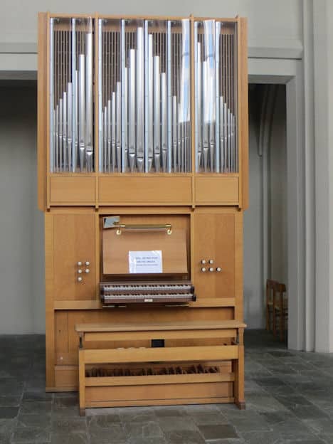 MANUAL II: C – g3 (56 TOETSEN) Rørfløjte 8′, Principal 4′, Spidsfløjte 2′, Mixtur, Obo 8′.
