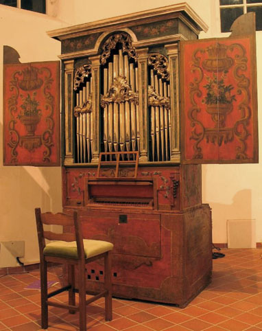 | ca 1740 onbekende bouwer (mogelijk Domenico Rossi uit Napels) 1982 rest. Fritz Schild 1994 rest. Winold van der Puttenwinddruk 40 mm toonhoogte a=431 Hz middentoonstemming (1/4 komma) |