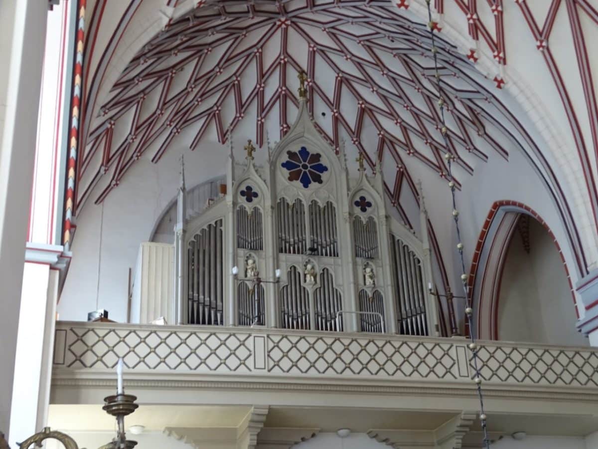 Oberwerk: C – g3 Borduna 16′, Principal 8′, Gedackt 8′, Gamba 8′, Oktava 4′, Tvarflojt 4′, Flojt 2′, Kornett, Mixtur 4-5 fach, Klarinette 8′, Schalmei 4′.