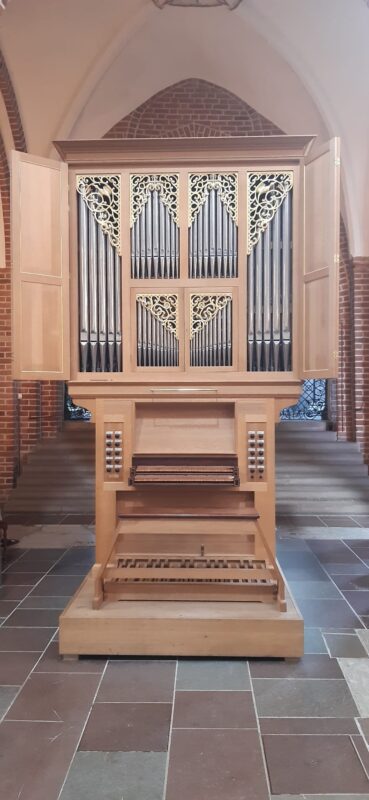 BRYSTVÆRK (C-g3): 56 TOETSEN Trægedakt 8′, Træfløjte 4′, Waldfløjte 2′, Sesquialtera 2 kor (from gis), Vox Humana 8′.