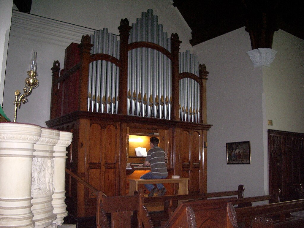 GREAT: Open Diapason 8′, Stopped Diapason 8′, Salicional 8′, Principal 4′, Flute 4′, Twelfth 2 2/3′, Fifteenth 2′, Mixture 2 ranks.