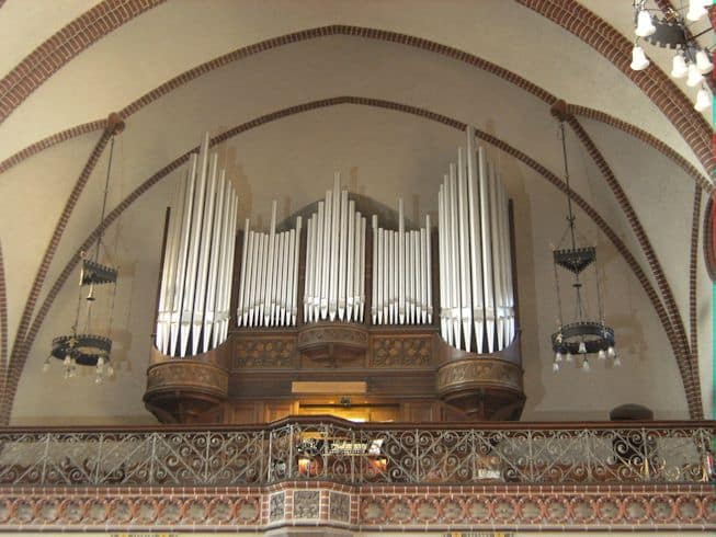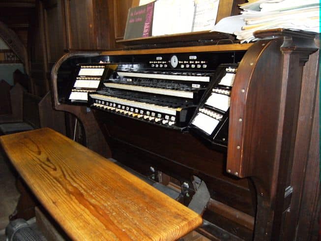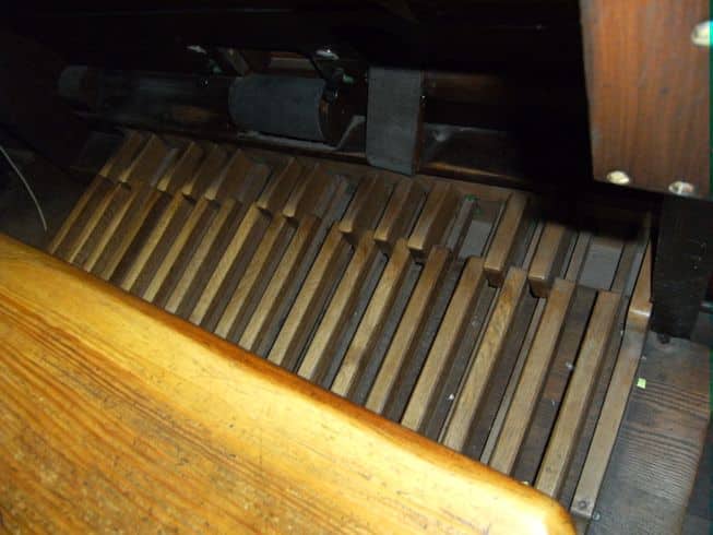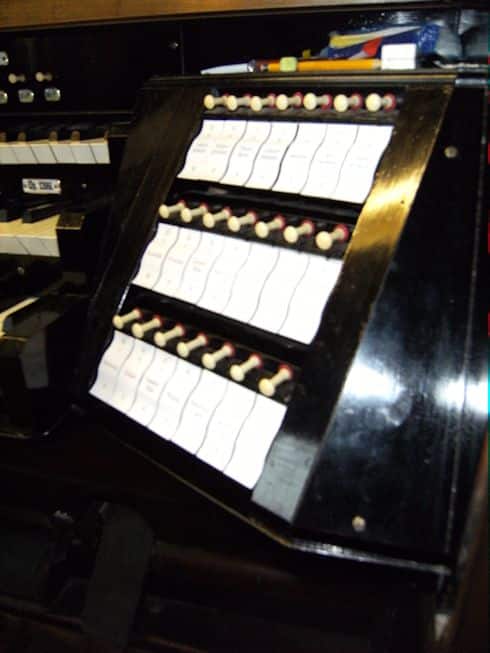 Schwellwerk: C – g3 Lieblich Gedeckt 16′, Geigenprincipal 8′, Flauto Dolce 8′, Lieblich Gedeckt 8′, Aeoline 8′, Voix Celeste 8′, Flauto Amabile 4′, Flautino 2′, Oboe 8′.