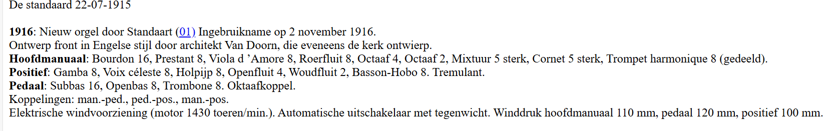 A. Standaart bouwde in 1916 een nieuw pneumatisch kegelladen-orgel met 2 manualen en een vrij pedaal voor de Bospolderkerk in Rotterdam (Delfshaven) Zuid-Holland. In 1954 werd het instrument door Bernard Pels & Zn. omgebouwd naar elektro-pneumatiek waarbij de dispositie werd gewijzigd. In 1966 werd de kerk gesloten en in gebruik genomen als opslagruimte. Het orgel is in datzelfde jaar overgeplaatst naar de kerkzaal van het Eudokiaziekenhuis in Rotterdam. Dit gebouw werd in 1991 gesloopt. Waarschijnlijk is het orgel ook afgebroken. De Bospolderkerk is in 1978 gesloopt.
