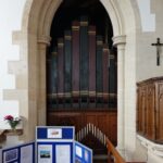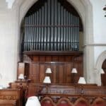 SWELL (C – f3) 54 TOETSEN (IN ZWELKAST): Double Diapason 16′, Open Diapason 8′, Stopped Diapason 8′, Principal 4′, Piccolo 2′, Horn 8′, Hautboy 8′.