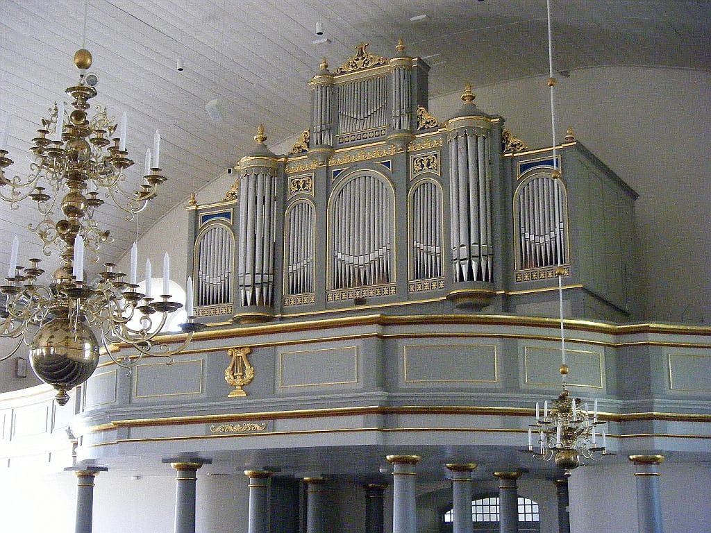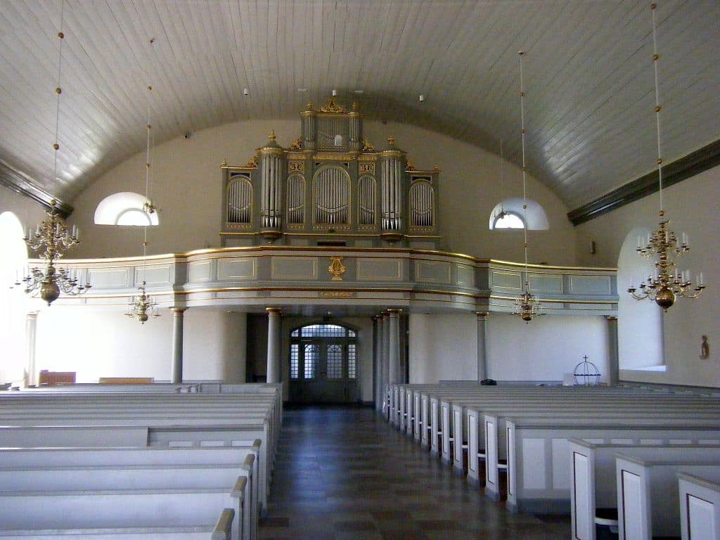 Het orgel in deze kerk werd oorspronkelijk in 1861 gebouwd door Jonannes Magnusson. In 1944 werd dit instrument gerestaureerd en uitgebreid door Mårtenssons Orgelfabrik uit Lund. Daarbij werd het front uitgebreid met twee zijvelden. Achter dit front bouwde Mårtensson in 1961 een nieuw orgel, deels met gebruikmaking van oud pijpwerk. In 2001 werd dit instrument door Mårtenssons Orgelfabriek gerenoveerd, waarbij tevens enkele wijzigingen in de dispositie werden aangebracht. Op het eerste manuaal verviel de Dulcian 16′, en werden een Borduna 16′ en een Cornett toegevoegd. Op manuaal II verviel de Terts. Verder werd de Bourdon 8′ vervangen door een Voix Céleste en de Regal door een Oboe. Op het pedaal is de Mixtur vervangen door een Rauschkvint. Het orgel kreeg ook een tweede (elektrische) speeltafel in het koor van de kerk. Deze heeft ook een generaal crescendo, zoals je kunt zien. Daarmee kun je in no time van heel zacht naar heel hard met het complete orgel. Hiermee worden alle registers heel snel achter elkaar uitgetrokken, of weer ingeduwd als je het pedaal weer terugduwt.