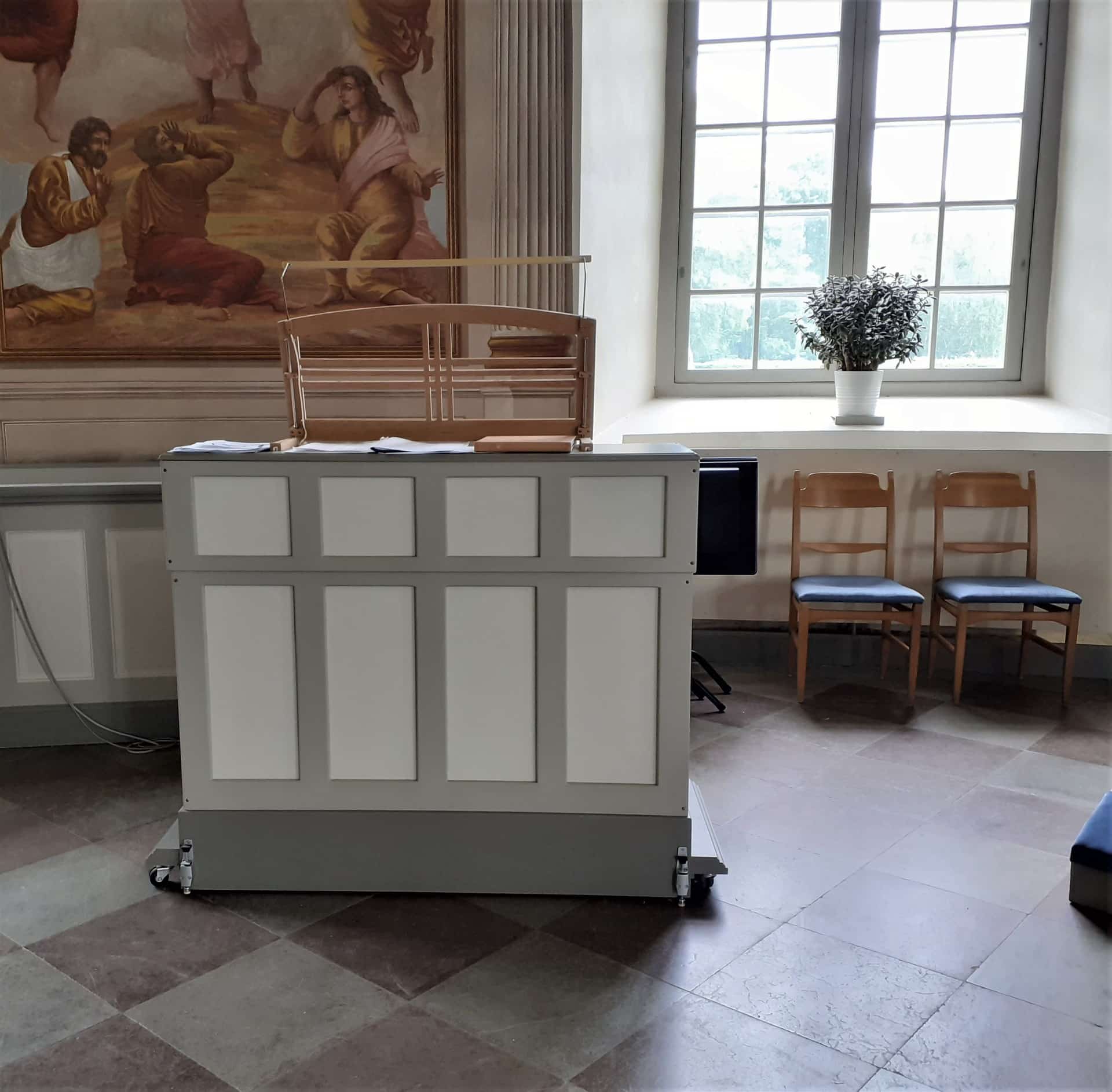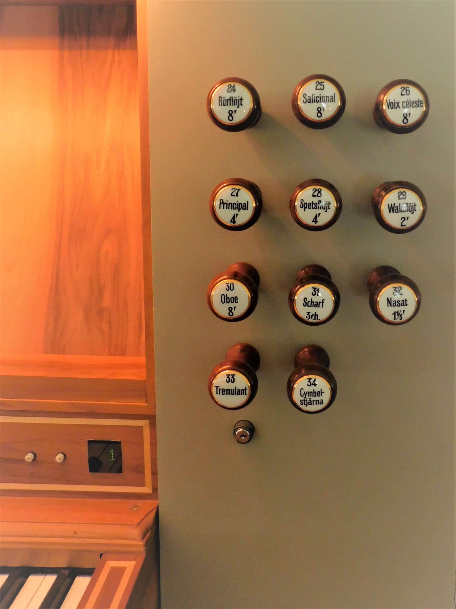MANUAAL II (C-g3): 56 TOETSEN Rörflöjt 8′, Salicional 8′, Voix Céleste 8′ – 2001, Principal 4′, Spetsflöjt 4′, Waldflöjt 2′, Nasat 1 1/3′, Scharf 3 chor, Oboe 8′ – 2001, Tremulant.