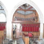 Great: Double Diapason 16′, Open Diapason 8′, Dulciana 8′, Rohr Flote 8′, Principal 4′, Harmonic Flute 4′, Nazard 3′, Fifteenth 2′, Mixture III, Trumpet 8′.