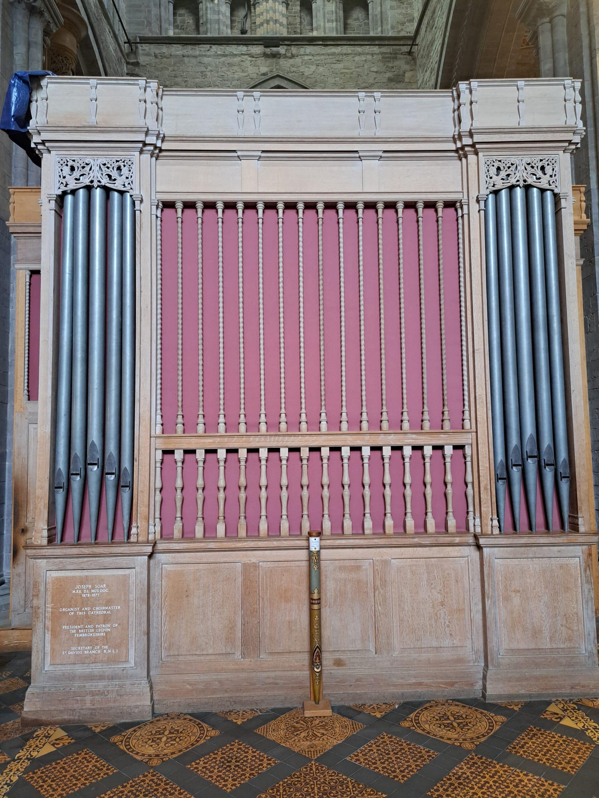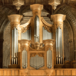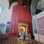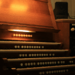 EAST CHOIR ORGAN: C – c4 (61 TOETSEN) Contra Gamba 16′, Claribel Flute 8′, Gamba 8′, Dulciana 8′, Voix Céleste 8′ (TC), Principal 4′, Flûte Harmonique 4′, Piccolo 2′, Corno di Bassetto 8′, Tremulant, Tuba 8′ – unenclosed.