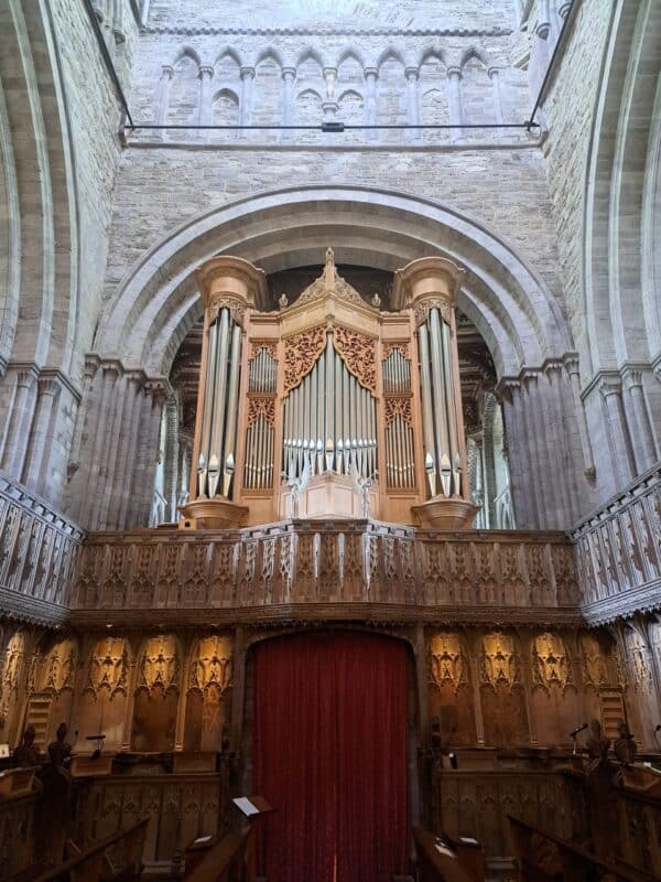 In 1883 bouwde de firma Willis een drieklaviers orgel voor Saint David’s Cathedral in Wales (Pembrokeshire). In 1953 heeft de firma Hill, Norman & Beard het orgel in een nieuwe orgelkas geplaatst die ontworpen is door Alban Caroe. Het orgel werd in de jaren daarna verschillende malen veranderd. In de jaren 1996-2000 voerde Harrison & Harrison een herbouw uit in een grotendeels nieuwe orgelkas. Op 15 oktober 2000 werd het sleepladen-orgel met elektrische tractuur weer in gebruik genomen. Op 15 november 2000 heeft Roy Massey een eerste orgelconcert gegeven op het hernieuwde orgel. Het pedaalklavier is radiaal concaaf.
