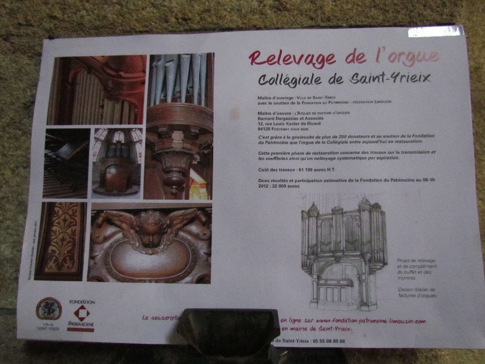 Bernard Dargassies bouwde in een onbekend jaar een nieuw orgel voor het Collégiale de Saint-Irieix in Saint-Irieix-de-la-Perche (Haute-Vienne (87)).