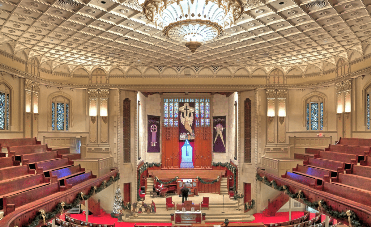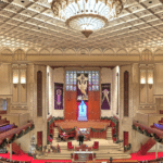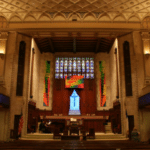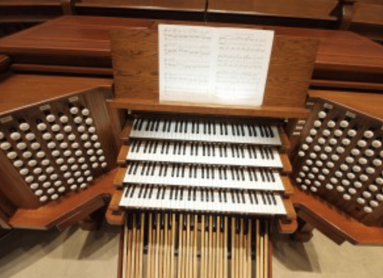 ANTHIPHONAL ORGAN (C – c4) 61 TOETSEN: Gedeckt 8′, Viol 8′, Viol Celeste 8′, Octave 4′, Triangle Flute 4′, Lieblich Quint 2 2/3′ – extension, Lieblich Flute 2′ – extension, Trumpet 8′, Tuba Mirabilis 8′ – from Great, Echo Chimes – from Antiphonal, Tremolo.