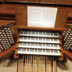CHOIR (C – c4) 61 TOETSEN: Viola 8′, Viola Celeste 8′, Concert Flute 8′, Dulciana 8′, Unda Maris 8′, Fugara 4′, Flute d’Amour 4′, Dulciana 4′ – extension, Nasard 2 2/3′, Piccolo 2′, French Horn 8′, Clarinet 8′, Tremolo, Tuba Mirabilis 8′ – from Great, Chimes – from Great.