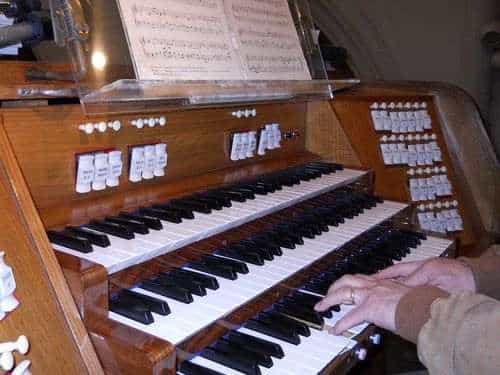 Koppelingen: Accouplement du Positif au Grand Orgue, Accouplement du Récit au Grand Orgue, Accouplement du Récit au Positif, Tirasse Grand Orgue, Tirasse Positif, Tirasse Récit.