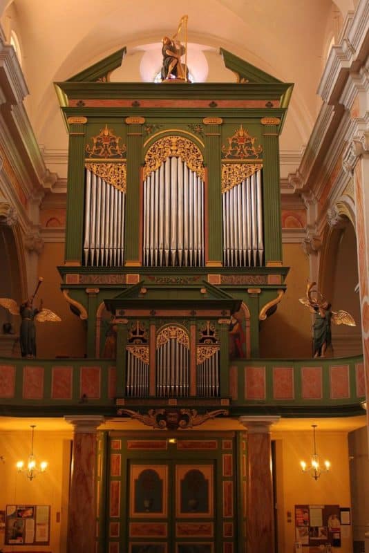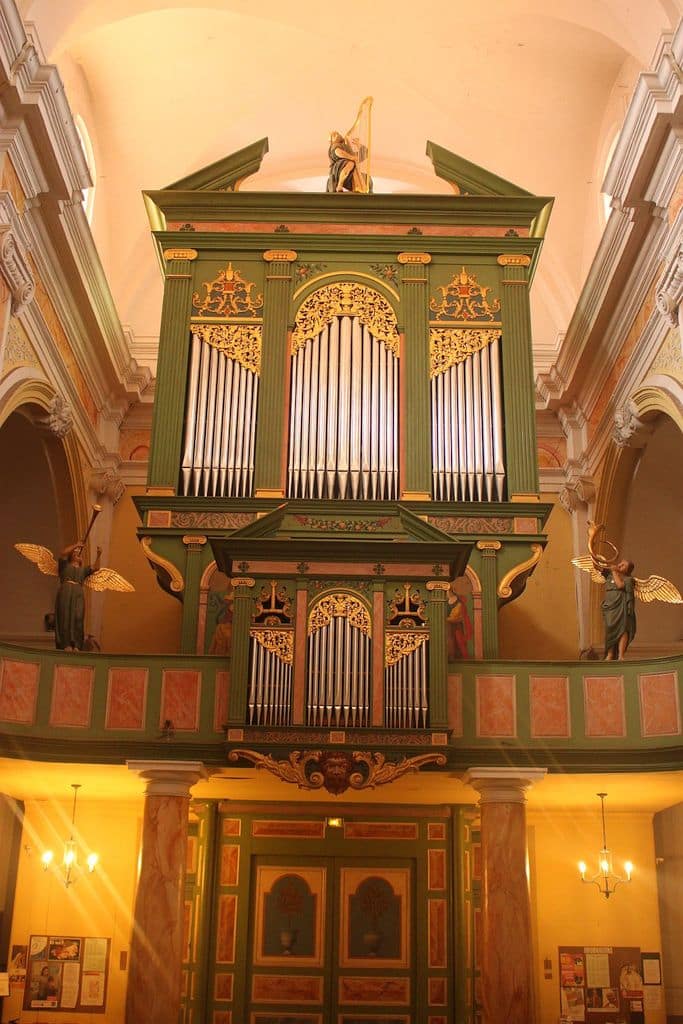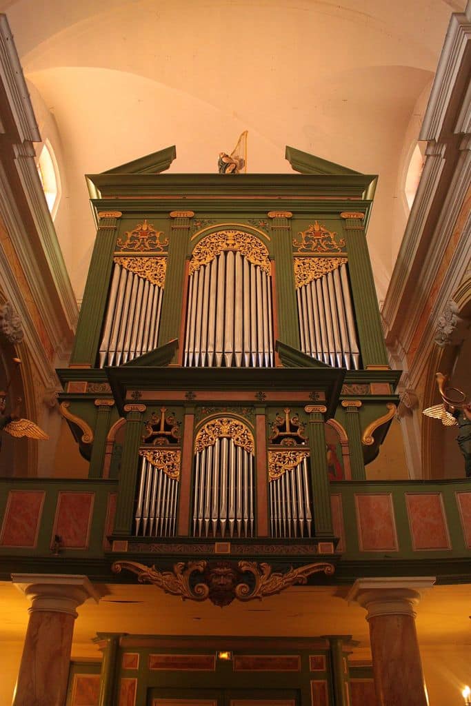 Grand Orgue: C – f3 (54 toetsen) Bourdon 16′, Montre 8′, Bourdon 8′, Prestant 4′, Flûte 4′, Nazard 2 2/3′, Quarte de Nazard 2′, Tierce 1 3/5′, Fourniture 4 rangs, Cymbale 3 rangs, Trompette 8′, Voix Humaine 8′, Clairon 4′.