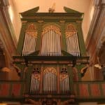 Positif de Dos: C – f3 (54 toetsen) Principal 8′, Bourdon 8′, Montre 4′, Flûte Allemande 4′, Nazard 2 2/3′, Doublette 2′, Tierce 1 3/5′, Plein-Jeu 5 rangs, Cromorne 8′.