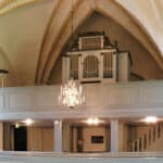 HUVUDVERK (C-g3): 56 TOETSEN Principal 8′ – 1855, Gedackt 8′ – 1855, Oktava 4′ – 1855, Hålflöjt 4′, Quinta 2 2/3′ – 1855, Oktava 2′ – 1855, Mixtur 4 chor.