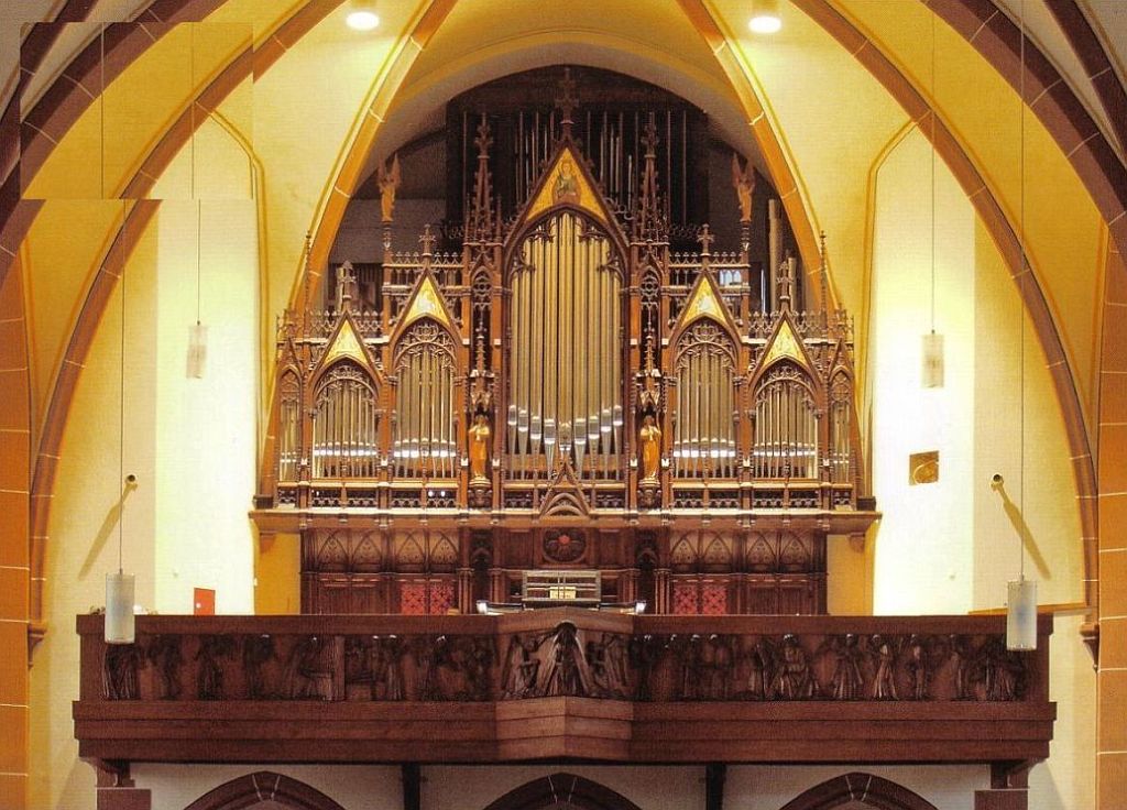 Hauptwerk: C – g3 Principal 16′, Weitprincipal 8′, Geigenprincipal 8′, Flöte 8′, Gemshorn 8′, Oktav 4′, Hohlflöte 4′, Octave 2′, Cornett 4 fach, Rauschquinte 2 fach, Mixtur 4 fach, Cymbel 4 fach, Horn 8′, Clarine 4′.