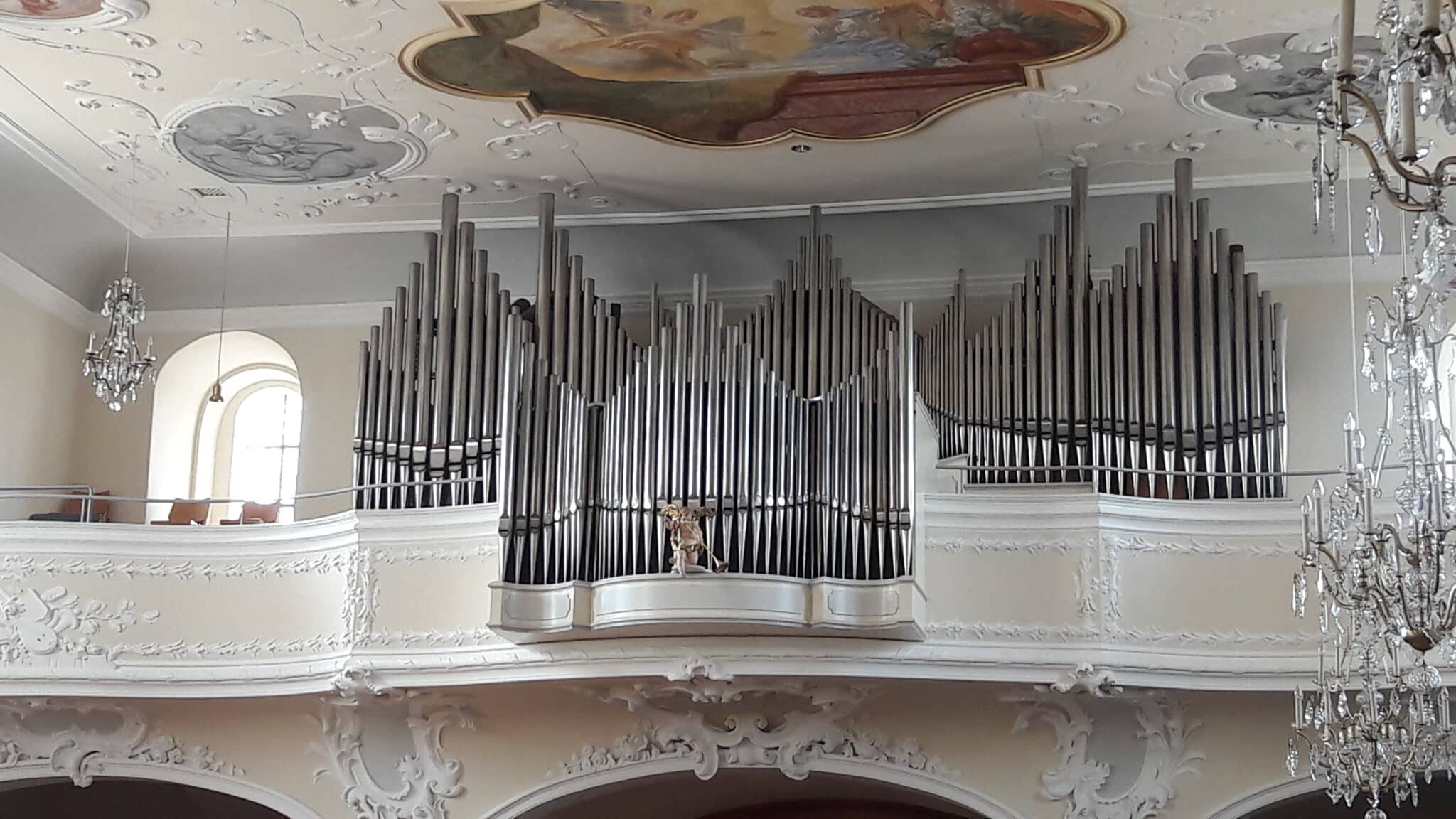 Schwellwerk: Koppelflöte 8′ Weidenpfeife 8′ Prinzipal 4′ Schwiegel 2′ Sesquialter II Scharff V Rohrschalmey 8′ Tremolo |
