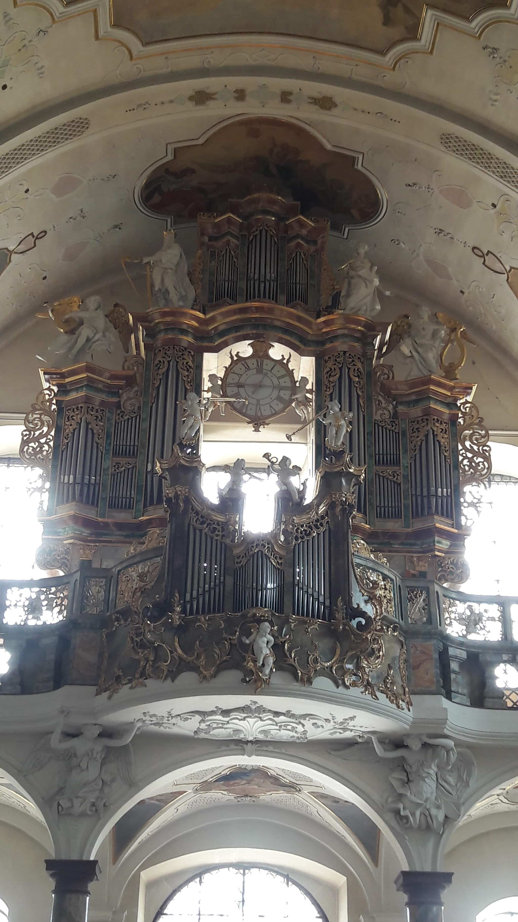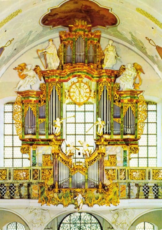 Het orgel van de oude kloosterkerk in Sankt Peter im Schwarzwald werd oorspronkelijk in de jaren 1725-1731 gebouwd door Johann Georg Fischer. Hij bouwde een tweeklaviers orgel met hoofdwerk, kroonpositief en pedaal. In 1763-1764 is het orgel gereviseerd en uitgebreid met een rugpositief door Joseph Pottier en Blasius Bernauer. In de loop van de negentiende eeuw werd het instrument verschillende keren gerepareerd. Het oude werk is echter op de kassen na afgebroken in 1879, waarna de firma Walcker een nieuw romantisch orgel geplaatst heeft. Dit werd in 1935 verbouwd en uitgebreid door de Gebr. Späth. Uiteindelijk is in 1967 een geheel nieuw orgel met sleepladen, mechanische speeltractuur en elektrische registertractuur achter het historische front gebouwd door de firma Klais. Vanaf de speeltafel van dit orgel kan ook het koororgel uit 1964 worden bespeeld.
