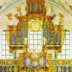 PEDAL: C – f1 (30 TOETSEN) Principal 16′, Subbass 16′, Octav 8′, Rohrpommer 8′, Superoctav 4′, Koppelflöte 4′, Blockflöte 2′, Rauschpfeife 5 fach (2 2/3′), Posaune 16′, Zink 8′, Clairon 4′.