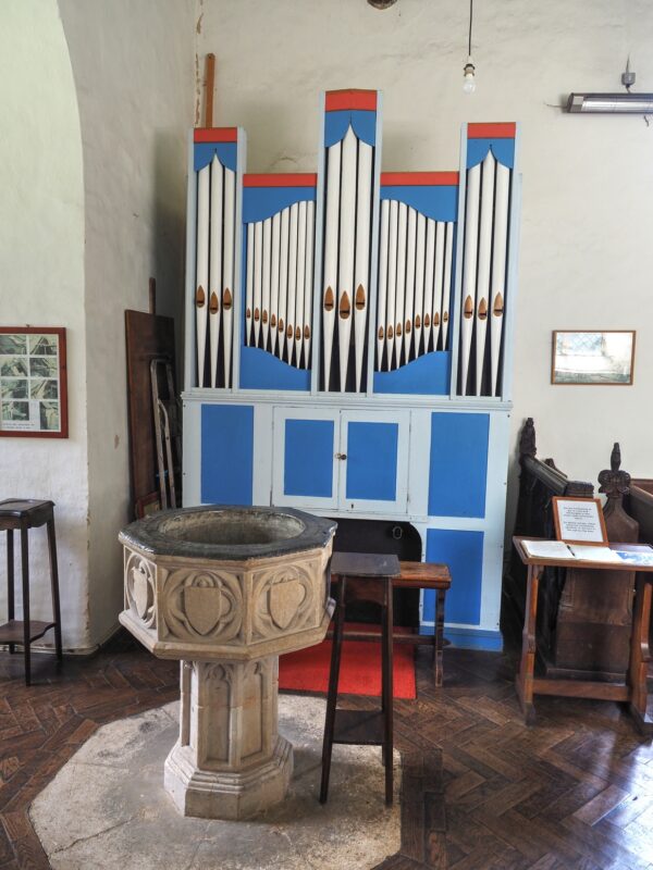 MANUAL: C – f3 (54 TOETSEN) Stopped Diapason 8′, Open Diapason 8′, Principal 4′, Fifteenth 2′.