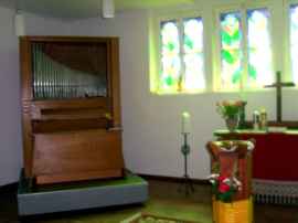 Manual: C-f3 Holzgedackt 8‘, Rohrflöte 4‘, Principal 2‘, Scharff 2-3 fach.