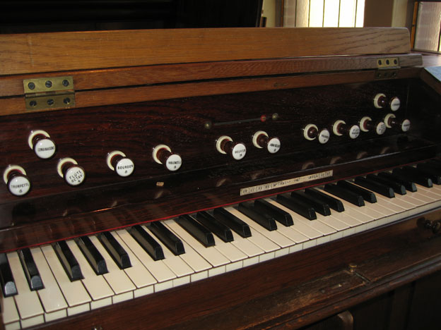 MANUAAL (C – c4) 61 TOETSEN: Bourdon 16 D, Bourdon 8 B, Flûte harmon. 8 D, Violoncelle 8 B/D (geheel doorlopend), Voix Céleste 8 D, Flûte octav. 4 B/D, Trompette 8 B/D (volle bekerlengte!).