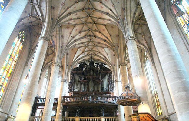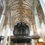 Pedal: (C-f1) Contraviolon 32 Principal 16 Subbass* 16 Violon 16 Octave* 8 Cello* 8 Superoctave* 4 Metallgedackt* 4 Hintersatz 5f* 4’ Contraposaune 32 Posaune 16 Bombarde 16 Trompete* 8 Kopftrompete* 4 |