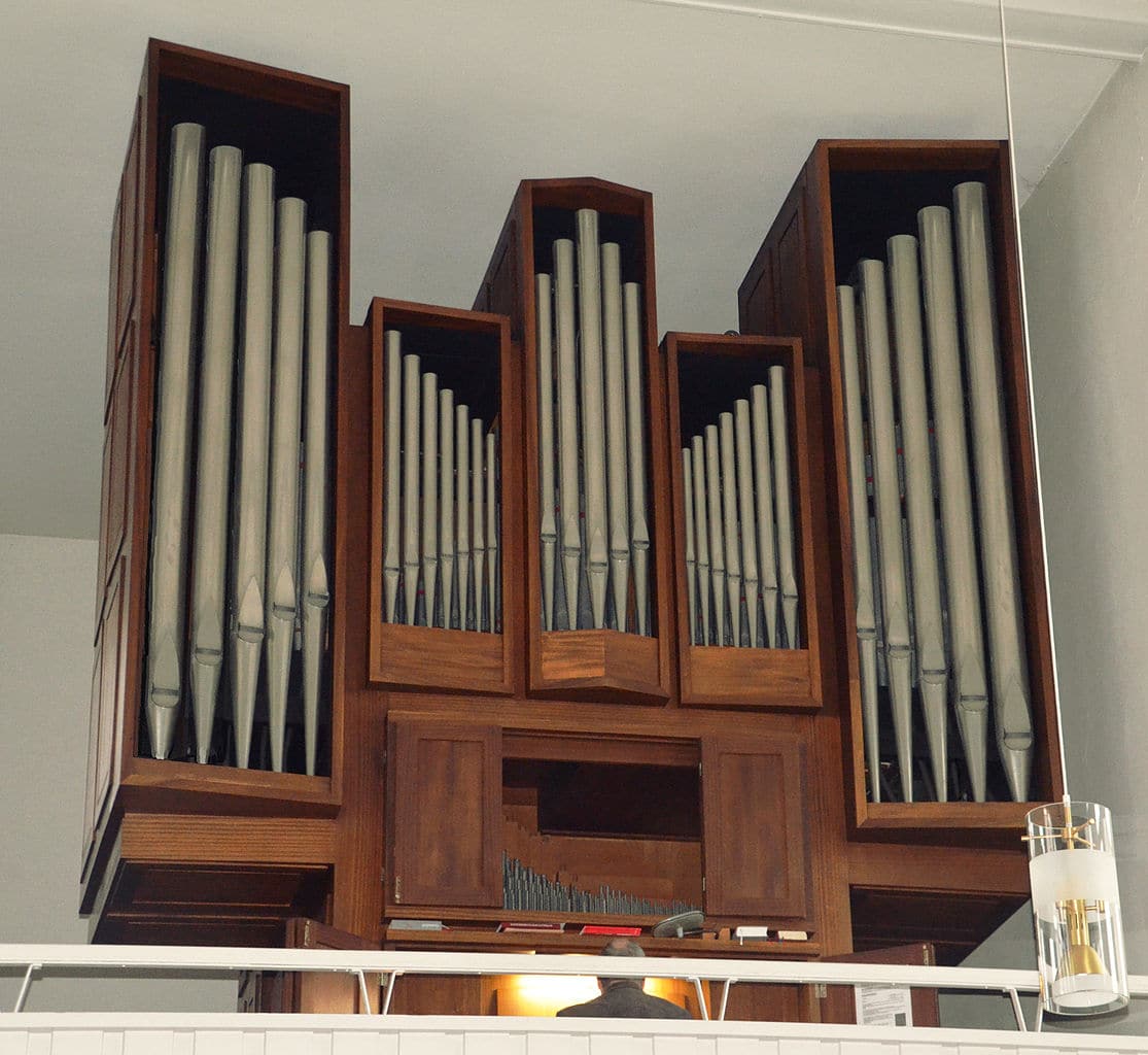 Brustwerk (C-g3): 56 toetsen Holzgedackt 8′, Blockflöte 4′, Waldflöte 2′, Quinte 1 1/3′, Scharff 3 fach, Tremulant.