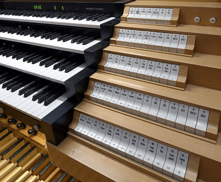 KOPPELINGEN: Hauptwerk – Chorwerk, Hauptwerk – Chorwerk 16′, Hauptwerk – Chorwerk 4′, Hauptwerk – Schwellwerk, Hauptwerk – Schwellwerk 16′, Hauptwerk – Schwellwerk 4′, Hauptwerk – Solo, Chorwerk – Schwellwerk, Chorwerk – Schwellwerk 16′, Chorwerk – Schwellwerk 4′, Chorwerk – Solo, Schwellwerk – Solo, Pedal – Hauptwerk, Pedal – Chorwerk, Pedal – Schwellwerk, Pedal – Solo, Chorwerk – Chorwerk 16′, Chorwerk – Chorwerk 4′, Schwellwerk – Schwellwerk 16′, Schwellwerk – Schwellwerk 4′.