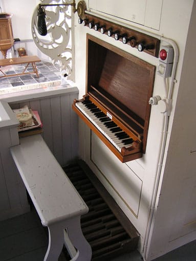 Het klavier bevindt zich (vanuit de kerk gezien) aan de rechterzijde van de orgelkas.