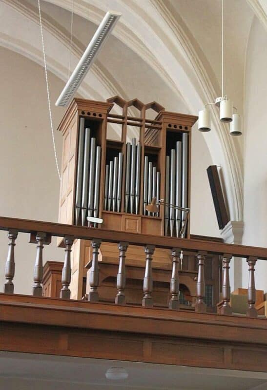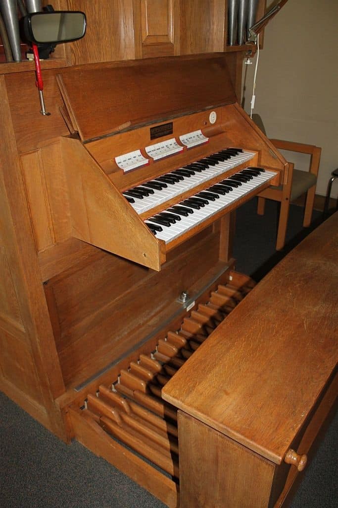 Pedaal: C – f1 Subbas 16′, Gedekt 8′, Koraal 4′, Kwint 2 2/3′, Octaaf 2′.