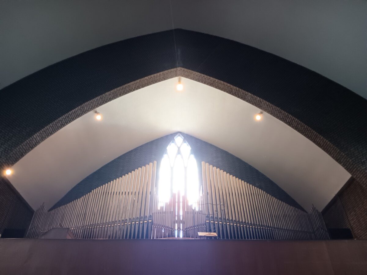 MANUAAL II (IN ZWELKAST) (C – g3) 56 TOETSEN: Hoornprestant 8′, Salicionaal 8′, Voix-Celeste 8′, Holpyp 8′, Dwarsfluit 4′, Woudfluit 2′, Sexquialter II sterk, Basson-Hobo 8′, Tremolo.