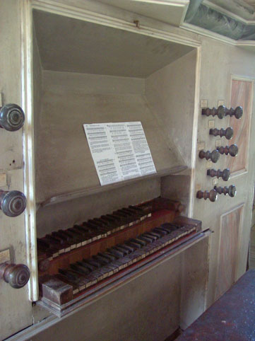 | I. Hauptwerk: (CD-c3) Prinzipal 8 Gedackt 8 Oktave 4 Quinte 2 2/3 Oktave 2 Mixtur 1 1/3 |