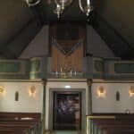 BRÖSTVERK (C-g3): 56 TOETSEN Gedakt 8′, Spetsgamba 8′, Koppeflöjt 4′, Principal 2′, Sivflöjt 1′, Vox Humana 8′.