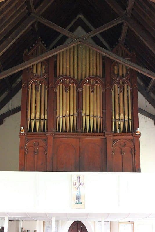 Great Organ: C – g3 Open Diapason I 8′, Open Diapason II 8′, Wald Flute 8′, Principal 4′, Twelfth 2 2/3′, Fifteenth 2′, Mixture 2 ranks.