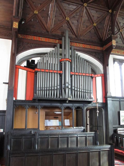 Swell: C – c4 (in zwelkast) Open Diapason 8′, Rohr Flute 8′, Gamba 8′, Geigen Principal 4′, Mixture, Trumpet 8′.