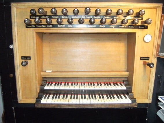 Bovenwerk: C – g3 Salicionaal 8′, Viool di Gamba 8′, Fluit Dolce 8′, Salicet 4′, Fluit Travers 4′, Quintfluit 3′, Nachthoorn 2′, Klarinet 8′.