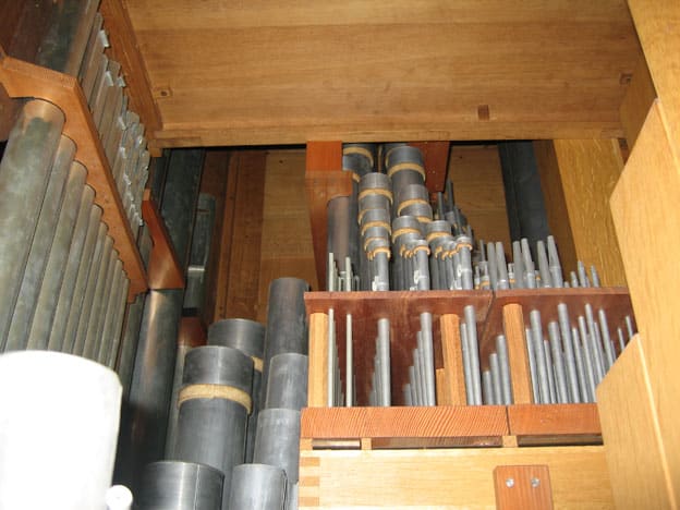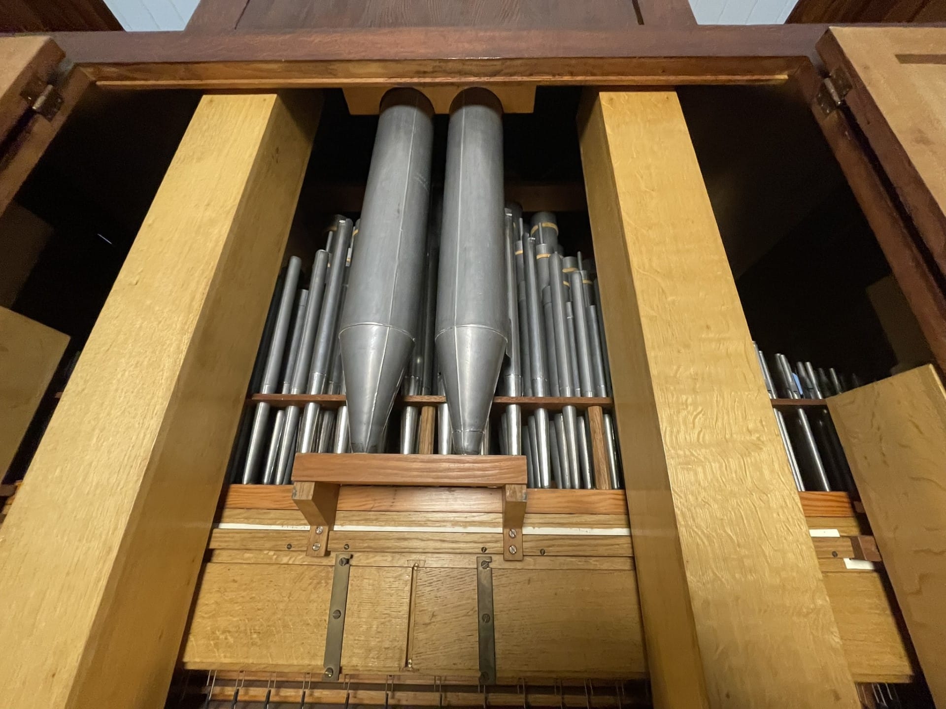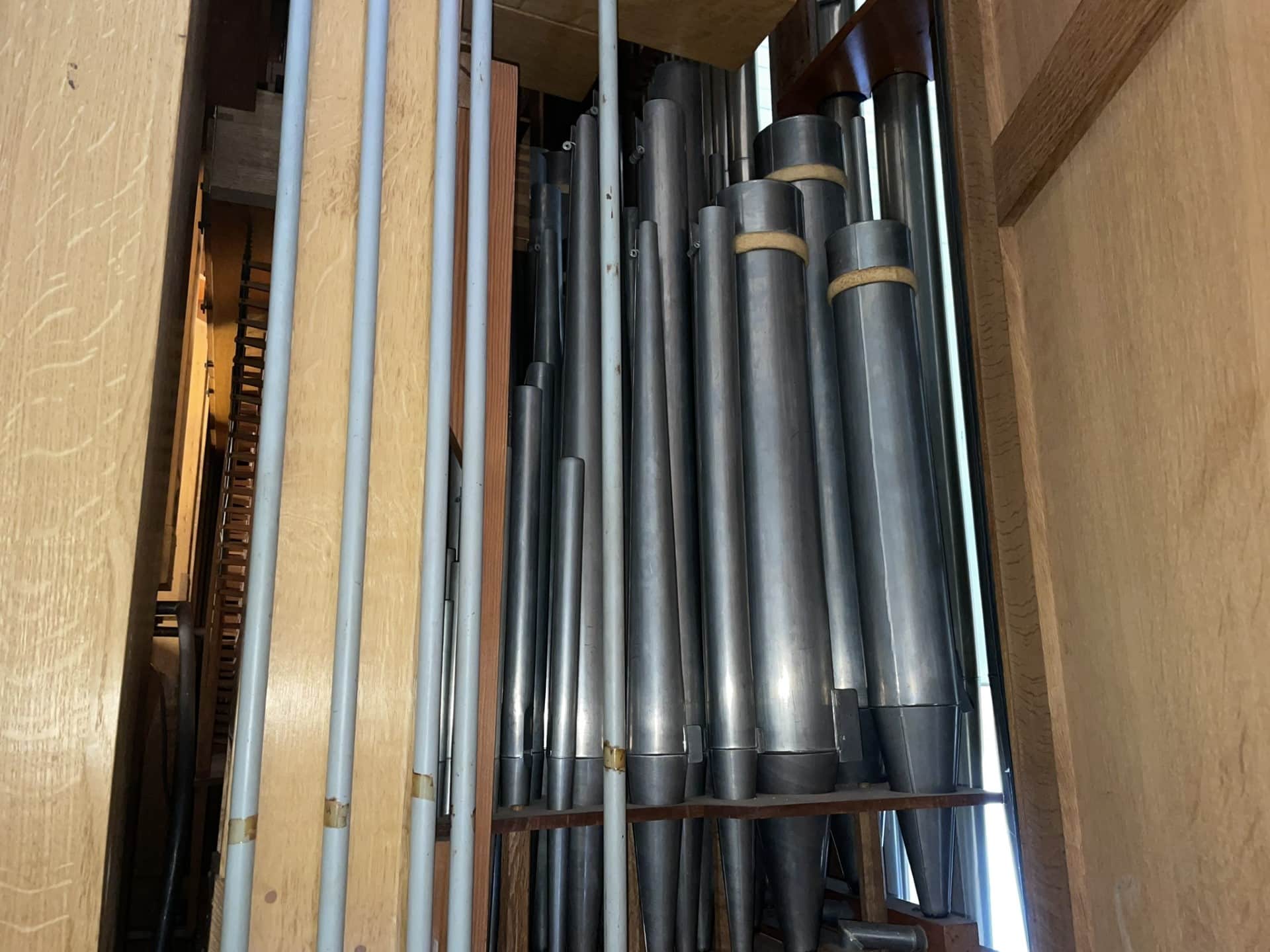 Bovenwerk (C-f3): 54 toetsen Gedekt 8′, Roerfluit 4′, Nasard 2 2/3′ – 1964/2016, Prestant 2′, Terts 1 3/5′ – 1964/2016.