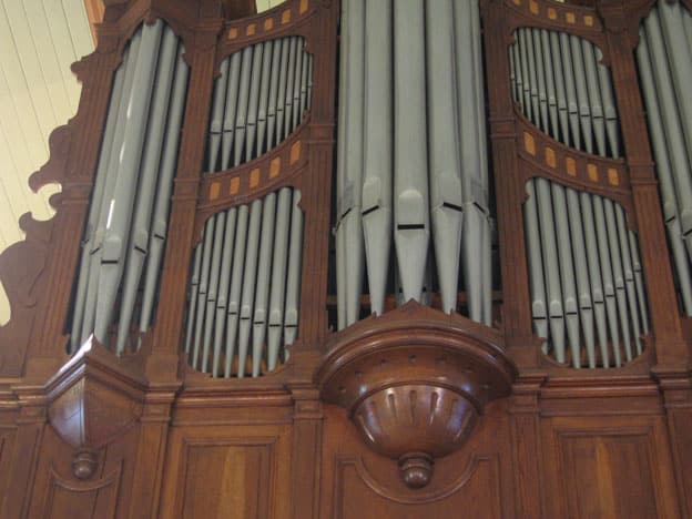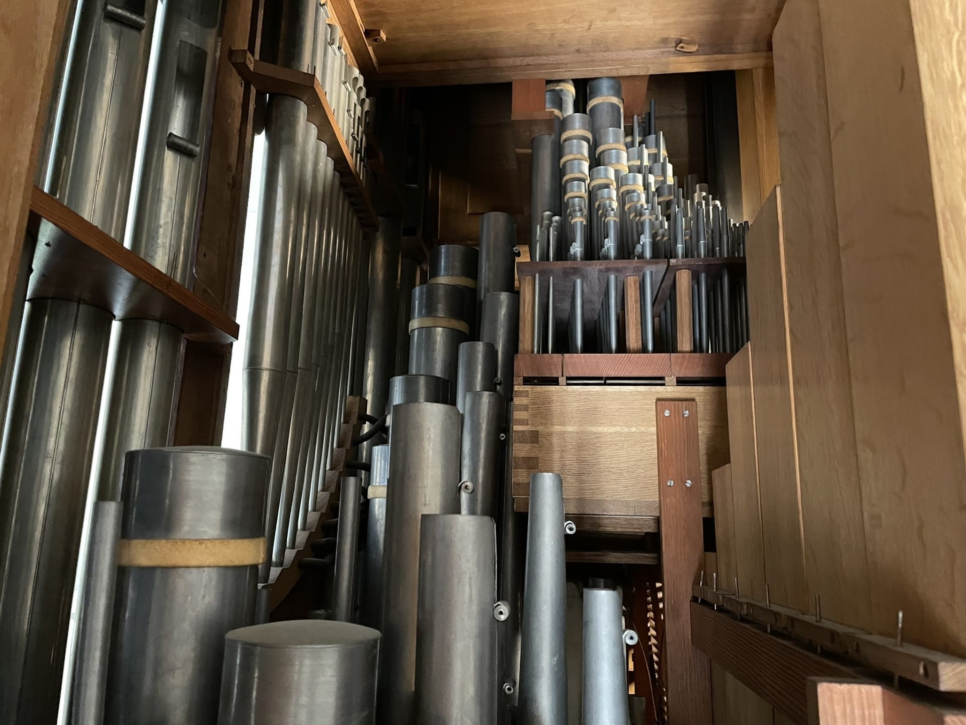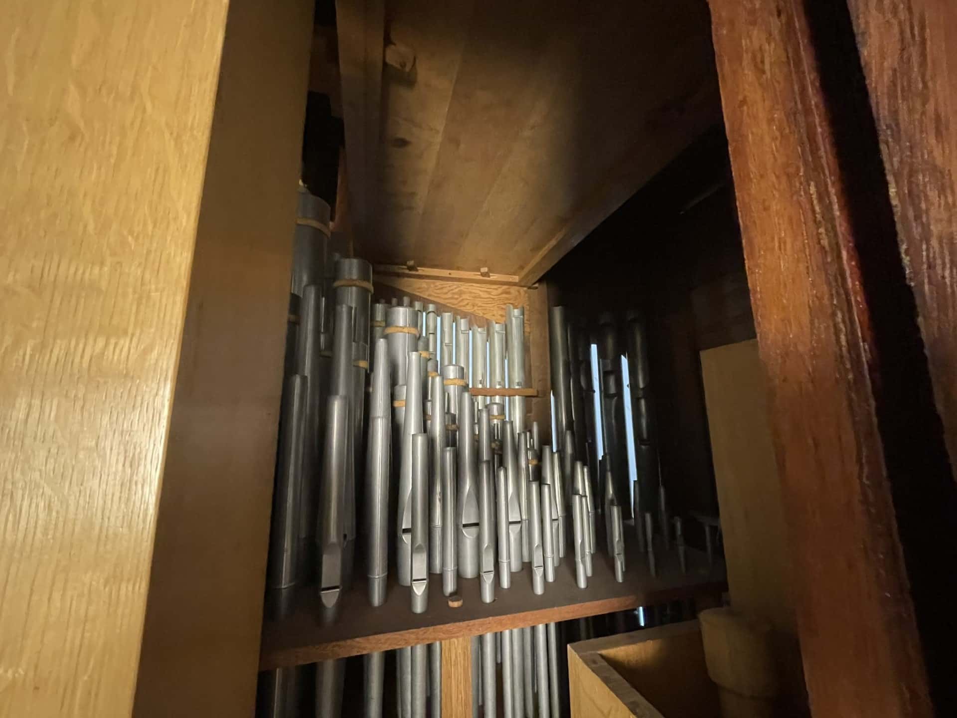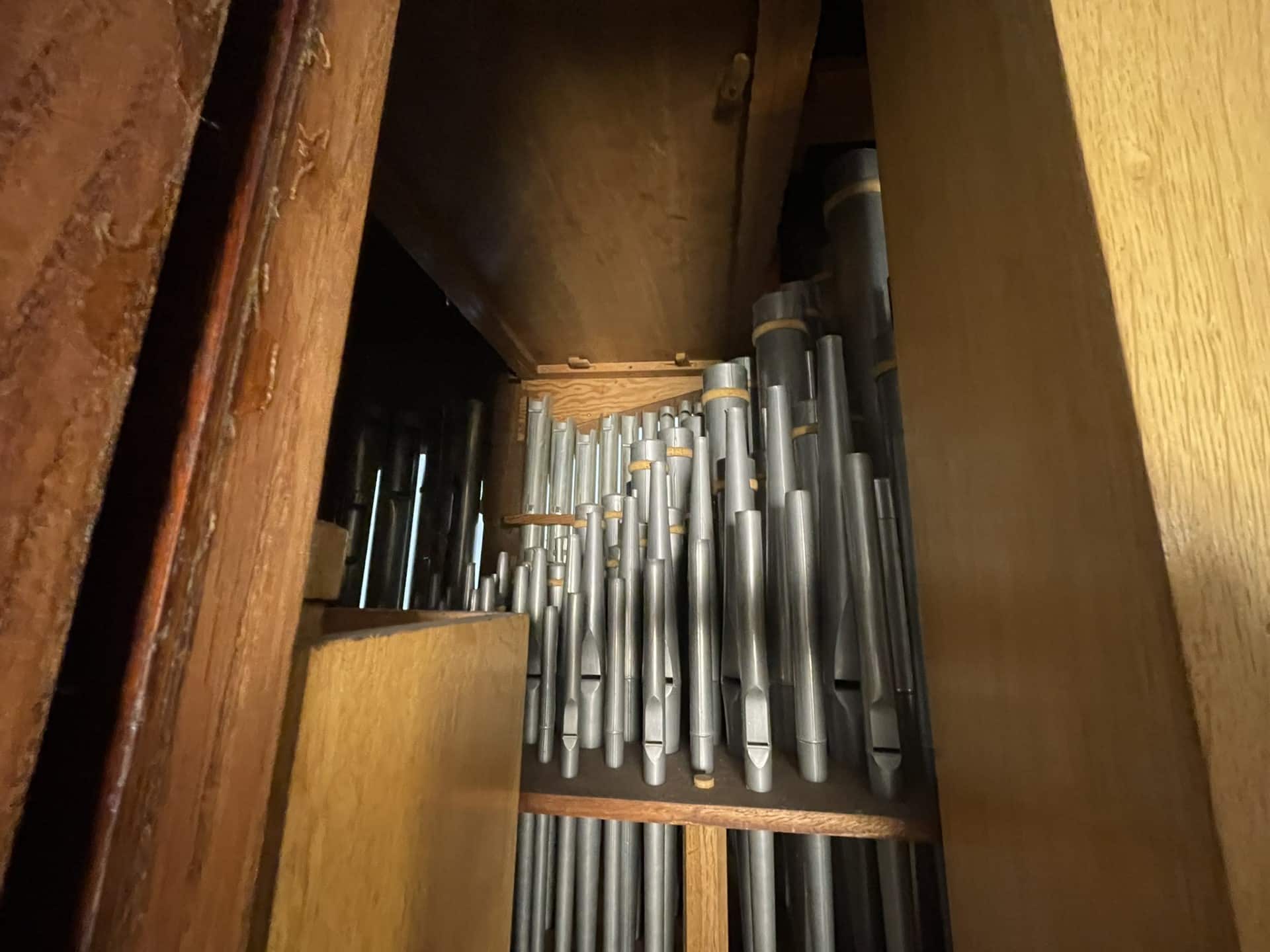 Bovenwerk (C-f3): 54 toetsen Gedekt 8′, Roerfluit 4′, Nasard 2 2/3′ – 1964/2016, Prestant 2′, Terts 1 3/5′ – 1964/2016.