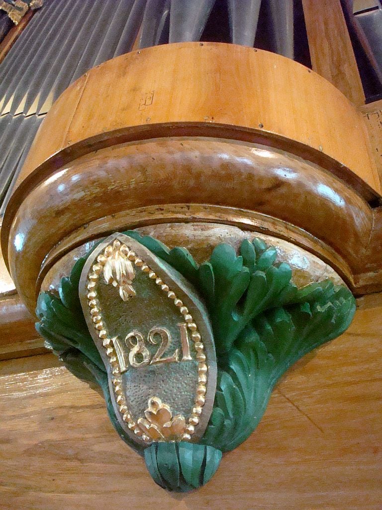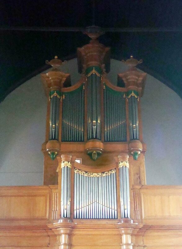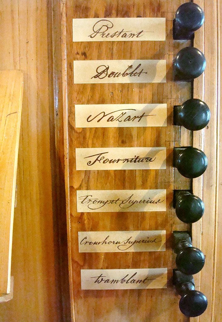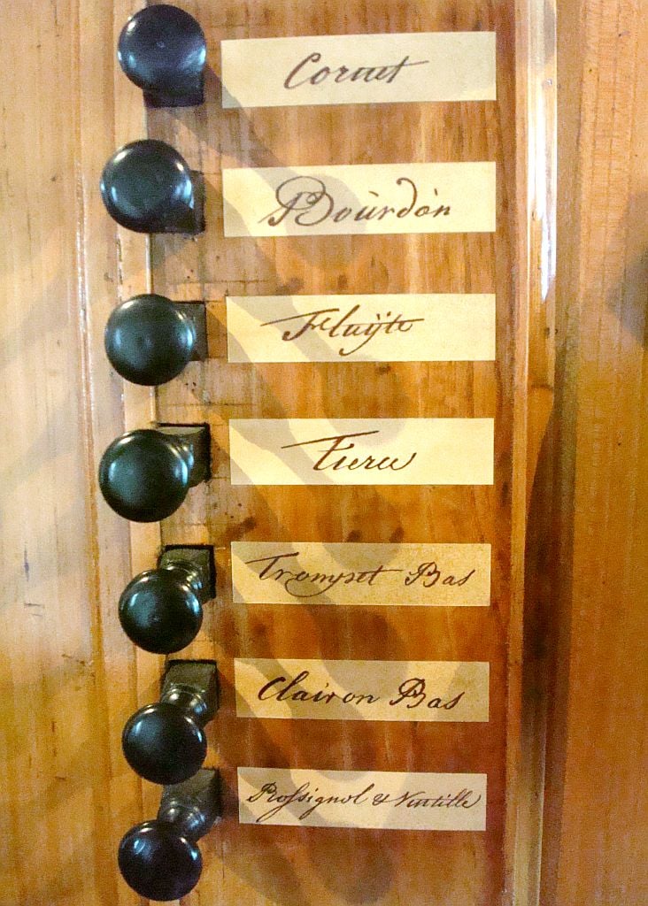 Manuaal: C – f3 Bourdon 8′, Prestant 4′, Fluijte 4′, Nazart 3′, Doublet 2′, Tierce 1 3/5′, Cornet V (8′), Fourniture IV (2/3′), Trompet 8′ (B/D), Cromhorn 8′ (discant), Clairon 4′ (bas), Tramblant, Rossignol.