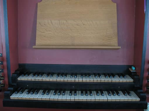 Positief: (C-f3) Roerfluit 8 Octaaf 4 Spitsfluit 4 (1971) Nazard 3 (1971) Octaaf 2 Sexquialter 3 st. D (1971) Dulciaan 8 (1971) Tremulant |