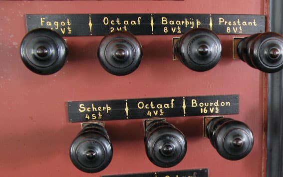 | Hoofdwerk: (C-f3) Prestant 16 D (1971) Bourdon 16 Prestant 8 – discant dubbel Baarpijp 8 Quintadeen 8 Octaaf 4 Quint 3 Octaaf 2 – discant dubbel Mixtuur 5 st. (1971) Scherp 4 st. (1971) Sexquialter 4 st. D (1971) Fagot 16 (1971) Trompet 8 B/D – discant 1971 |