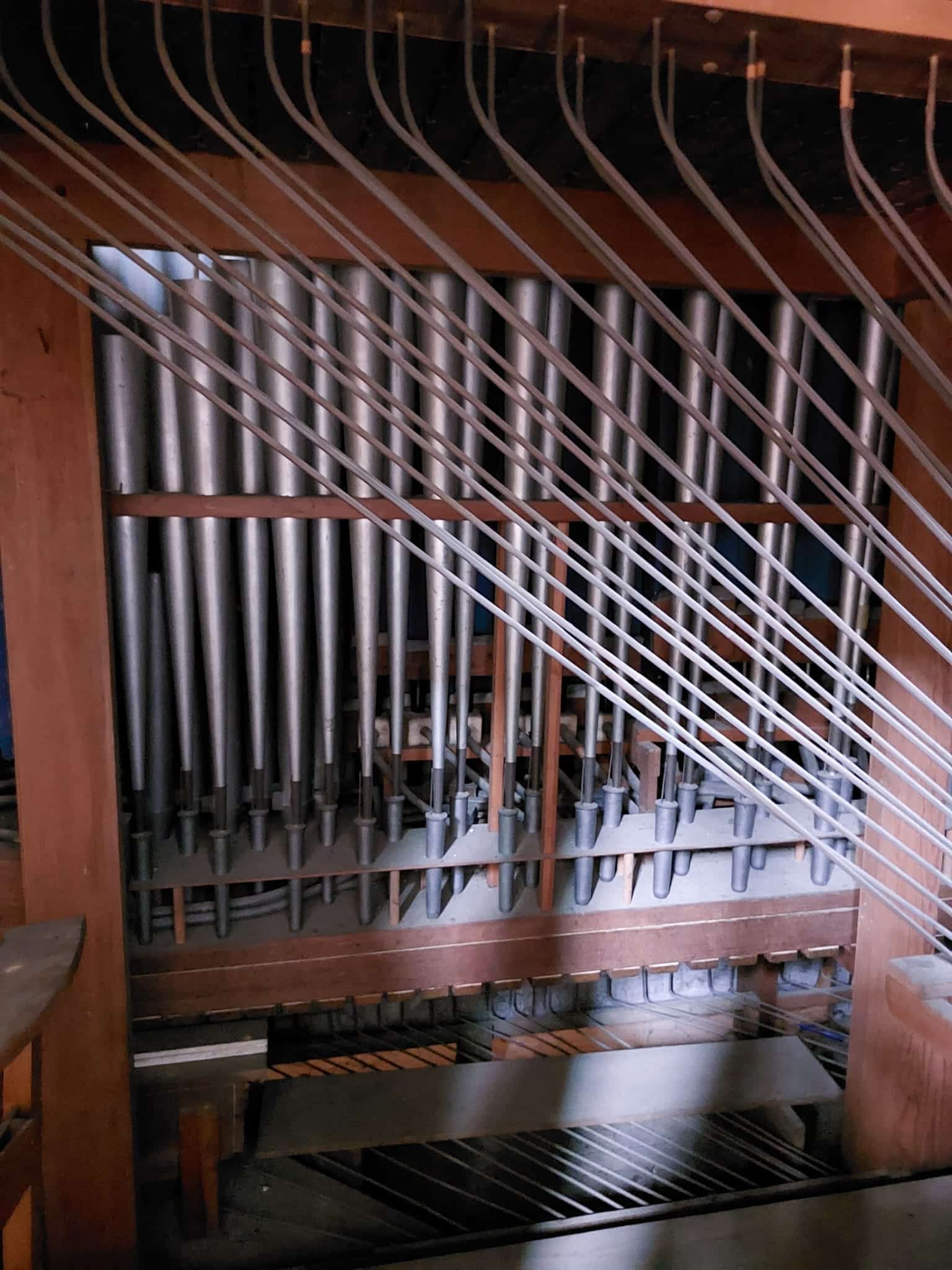 Grand Orgue. Onder klavier. Registers met wit gekleurd.